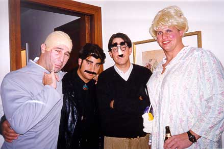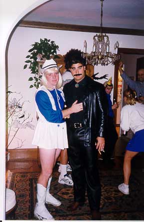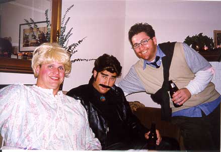 costume contest voting results: Kevin (Dallas Cowboy Cheerleader) -- 10 votes Mark (Burt Reynolds) -- 4 votes Annie (Loni Anderson) -- 4 votes Amy (Dom DeLouise) -- 3 votes Scott (John McEnroe) -- 2 votes Melissa (no costume) -- 2 votes Chris (Superman) -- 1 vote Ericka (Construction Worker w/ 40 oz. PBR) -- 1 vote Dack (no costume) -- 1 vote Matt (Catholic Schoolgirl) -- 1 vote |